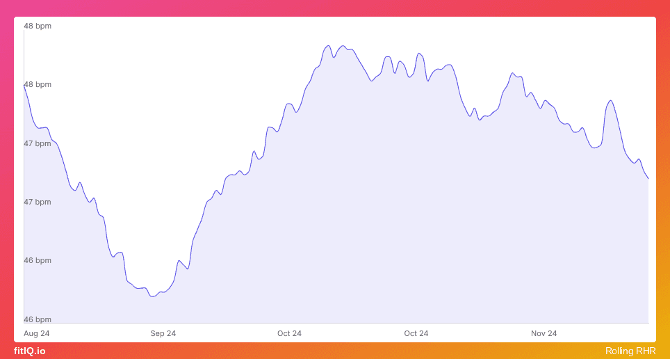 Rolling RHR: After some late-night feedings, my RHR spiked, but with some smarter planning and recovery strategies, it has come back down.